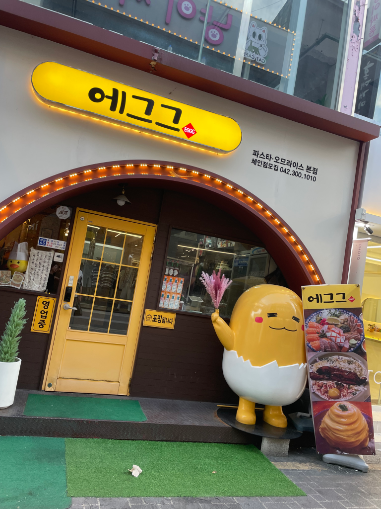 エググは、韓国で5番目に大きい都市と言われている大田(テジョン)市の中心部のスカイロードという商店街のメインロードからすぐ近くにあります。