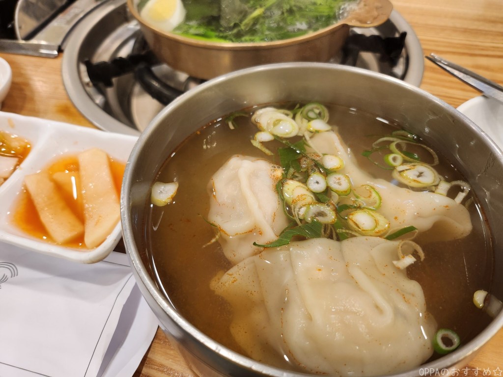 ⇧マンドゥグクに入っている平壌餃子。中の具もぎっしり詰まっていて美味しかったです🎶